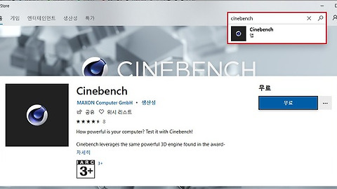 시네벤치는 CPU 성능 테스트를 하거나 오버클러킹 할 때 간단한 과부하 테스트용으로 사용해요. 사용 중인 CPU의 성능 수치를 숫자로 보여주기 때문에 성능을 간편하게 알아볼수 있기도 하고, 테스트 중에 CPU 로드율이 100%를 유지하기 때문에 오버클러킹 시에 대략적인 전압 잡을 때 사용해요. 물론 링스로 정밀하게 전압잡고 쓰셔야 해요. HWMONITOR와 함께 사용해서 CPU 부하가 걸려있을 때 온도가 얼마나 나오는지 테스트할 수도 있어요. 일부 발열이 많은 CPU의 경우엔 세 자리 숫자를 보실 수도 있어요. 다운로드는 마이크로소프트 스토어에서 CINEBENCH 검색하시면 돼요. 무료 프로그램이고요. 로그인 귀찮으시면 로그인 창 꺼도 다운로드 가능해요. 무료 버튼 클릭하셔서 설치 진행하세요. 설치가 완..